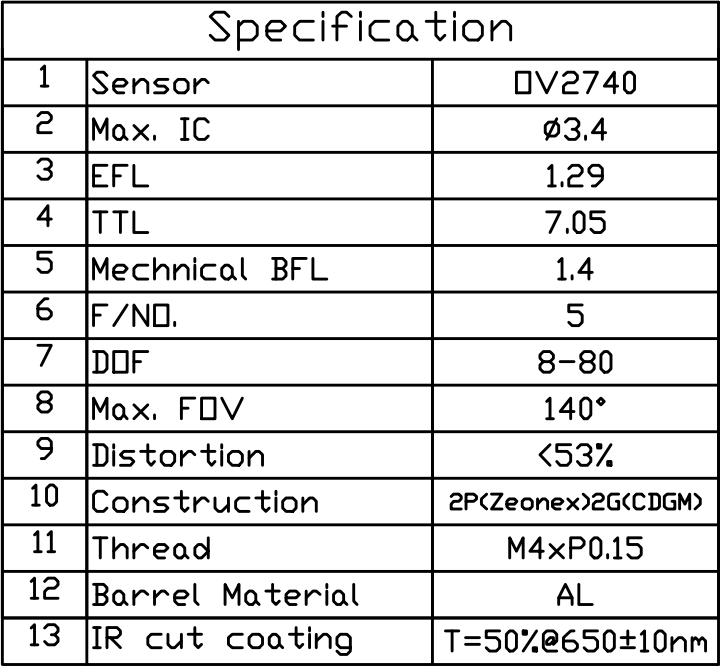 Modely čoček endoskopů PM904 a PM908, vhodné prosenzory 1/9", jako OV9734 a ES101,