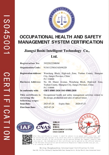 To znamená, že společnost Baoshi Intelligence zavedla standardizovaný systém řízení pokrývající celý řetězec výzkumu a vývoje optických čoček, výroby, prodeje a poprodejních služeb, čímž položil pevný základ pro nepřetržité poskytování vysoce kvalitních produktů a služeb.